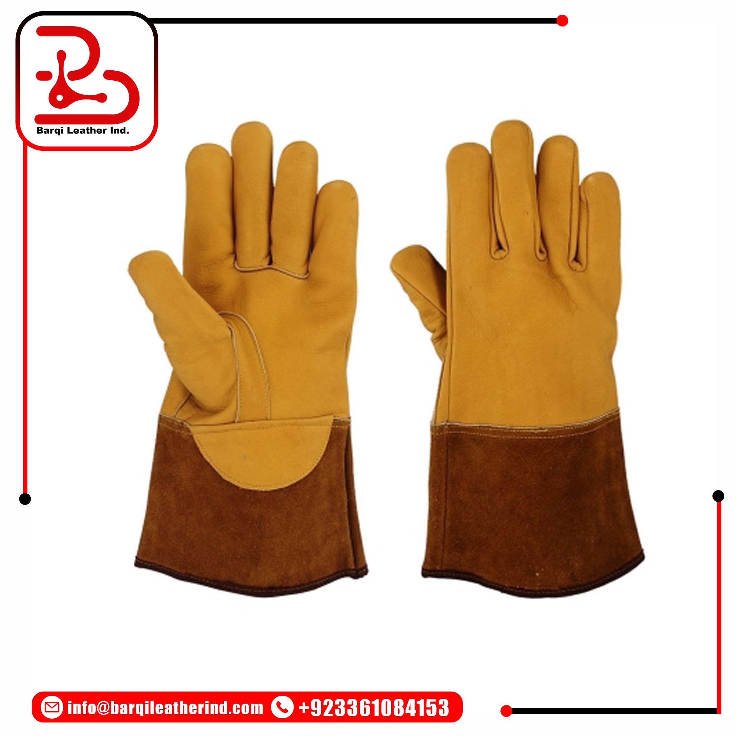 ๐ฅ Premium Welding Gloves by Barqi Leather ๐ฅ Built for Performance. Designed for Protection. Enhance your safety on the job with Barqi Leather Welding Gloves, expertly engineered for heat resistance, durability, and comfort. Crafted from high-quality smooth leather and reinforced with heavy-duty fabric, these gloves provide dependable protection in high-temperature and demanding welding environments. Ideal for professional welders, metal fabrication, construction, and industrial applications, Barqi Leather welding gloves deliver protection you can trust. โจ Key Features: โ Premium leather palm for superior grip and heat resistance โ Reinforced stitching for long-lasting durability โ Comfortable inner lining for extended wear โ High-visibility orange fabric for added safety โ Suitable for welding, metalwork, and heavy-duty industrial use Stay protected. Stay comfortable. Stay productive โ with Barqi Leather. ๐ฉ Order / Inquiry: info@barqileatherind.com ๐ Contact: +92 336 1084153 (Welding Gloves)